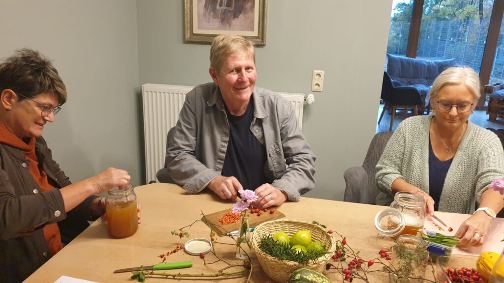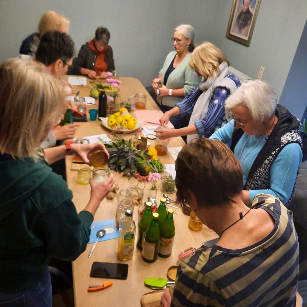 Neben dem Mischen und Rühren wurde auch gemeinsam gelacht, gefachsimpelt und gestaunt über die Heilkraft der Natur. So wurde das Treffen nicht nur zu einem praktischen Kräuterworkshop, sondern auch zu einem Moment des Dankes für die Schöpfung und ihre reiche Heilfülle – ganz im Sinne Hildegards, die sagte: